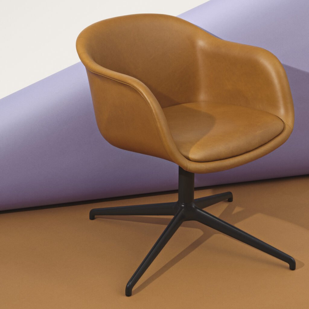 The Fiber Chair Family by Copenhagen–based design duo Iskos-Berlin now includes a Conference Armchair. Its sculptural shell seat features an innovative composition of 100 percent recycled plastic with a strengthening additive of up to 25 percent FSC-certified wood fibers. More noteworthy still, the plastic material production process uses renewable energy, exclusively.
