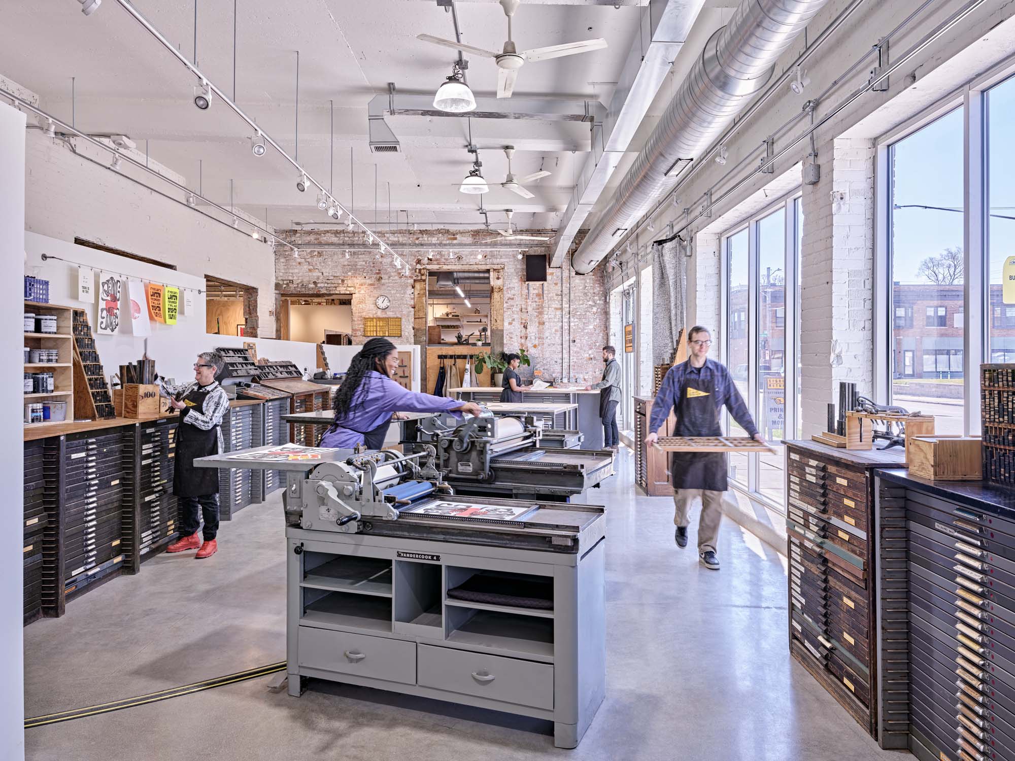 A few blocks north, the Curises have helped launch Lantern, a renovated former commercial bakery now home to Signal Return, a local print maker and educator; the Progressive Art Studio Collective (PASC), dedicated to supporting artists with developmental disabilities and mental health differences; and Assemble Sound, a local recording studio. The space will also host local food and retail, like Collect Beer Bar and Café Franco.