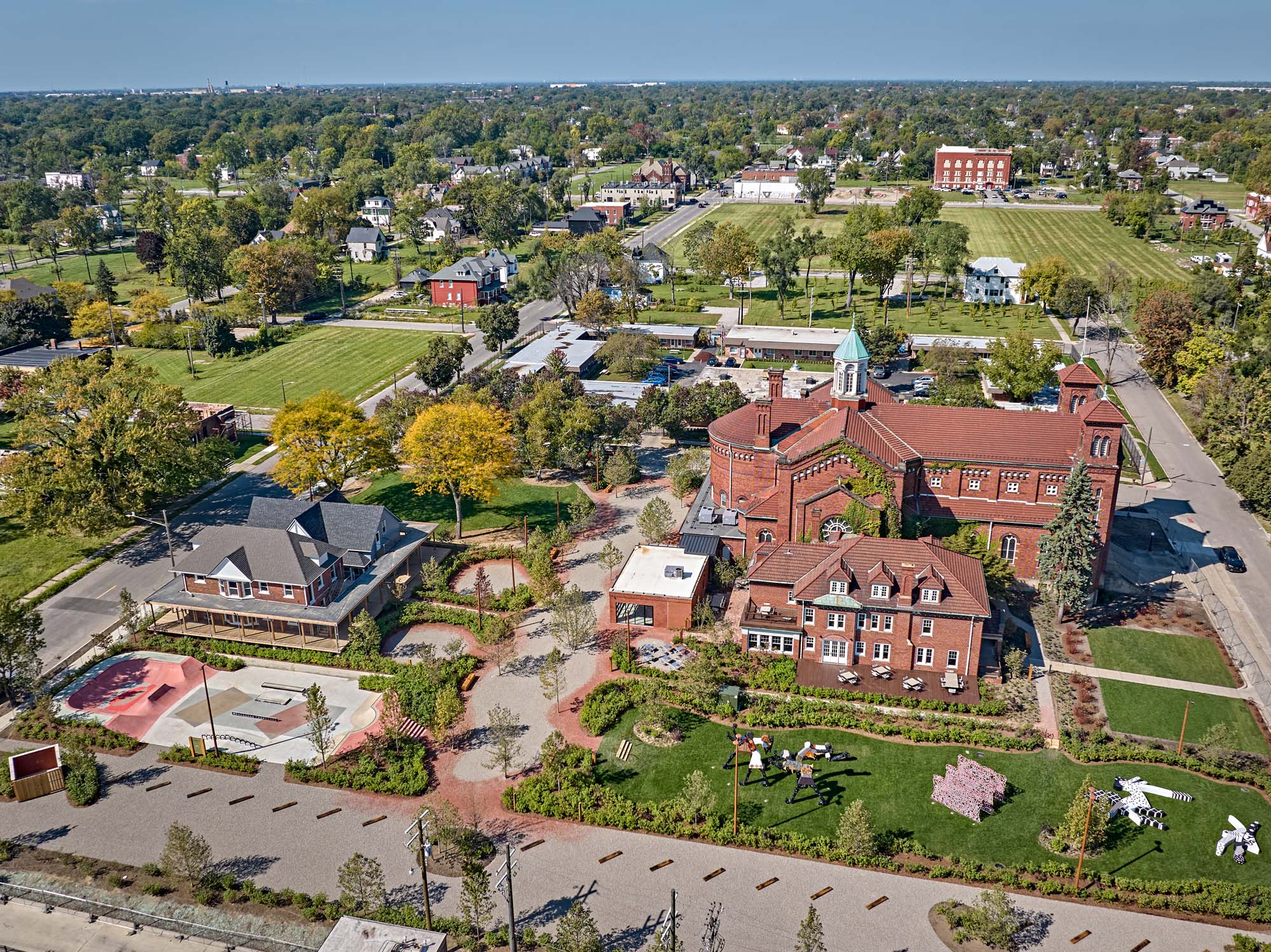 “Anthony would constantly say, ‘I’m speaking with this business, or this building, or this person” says Simon David, principal at New York-based OSD, The Shepherd’s landscape architect. Joshua Elling, CEO of Jefferson East, calls Little Village a “development that raises up the entire neighborhood.” He helped broker local connections, advised the Curises (as did other community members) to include spaces for local nonprofits and businesses, and prepared the team for any initial pushback—particularly as they come from far greater means than most community members.